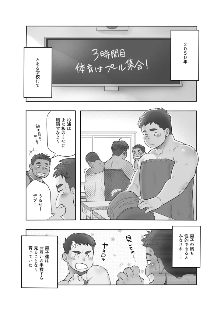 とある学校でのプールの授業では男子達が胸を隠しながら水着に着替えているが、