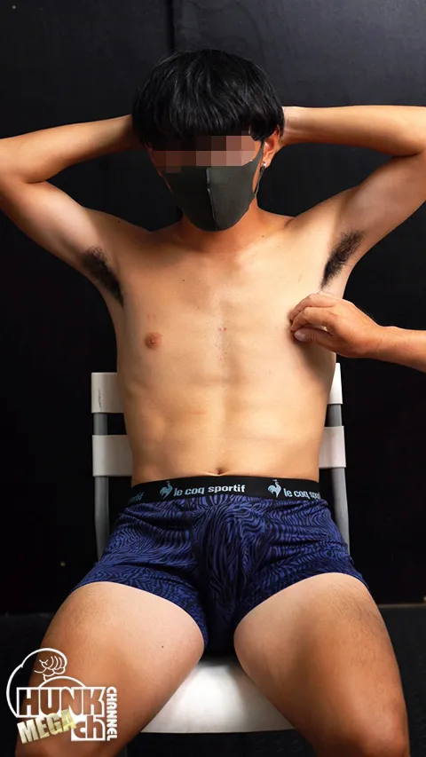 またまた日焼け跡がエロい今風の学生がやってきました!街で楽しそうに仲間と過ごしていそうな大学生でスポーツサークルに所属しており、見事な日焼け跡!身体も無駄のないスリ筋で肌スベスベ!そして以外にも体毛はしっかり生えており、剛毛とはいかないものの、脇、チン毛ともに男を思わせます。敏感体質なのか乳首にふれるとムクムクとパンツの中で大きく成長!パンツを脱ぐとまっすぐな美チンが登場!触れる度に身体全体で快感を表現!最後は全身で感じながらドロっと逝ってくれました!